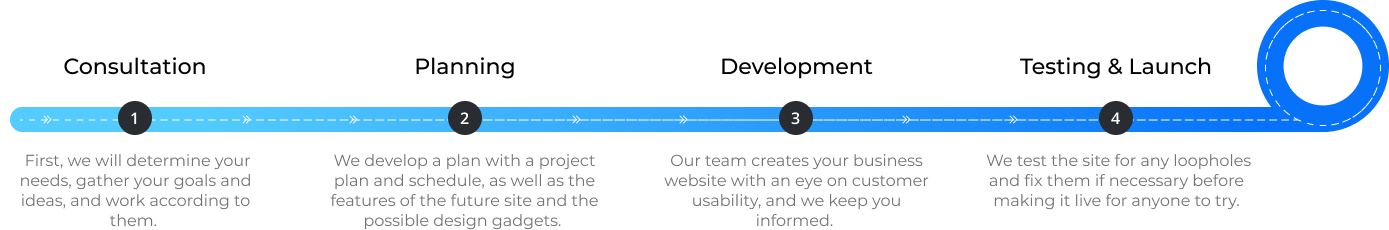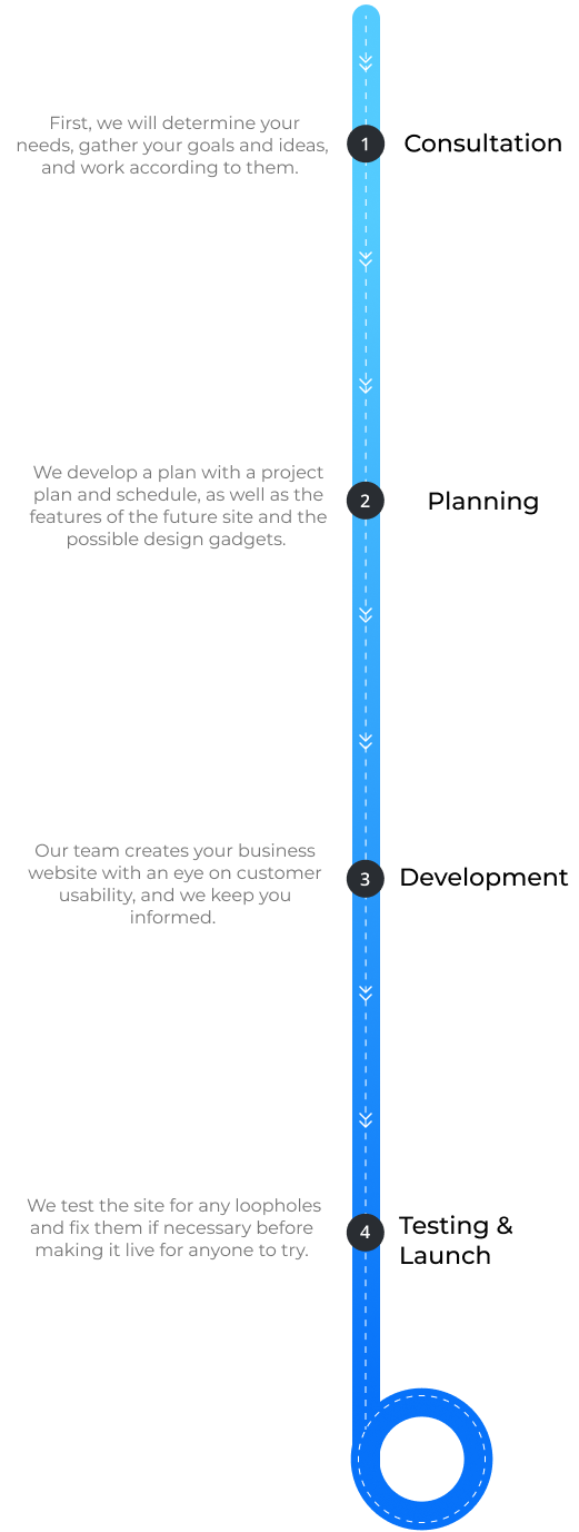 The process involves all aspects of Web Development, including planning and research, design conceptualisation, development and coding, testing, deployment, and quality checking. In the process each step is important to make sure that the web development will meet the system's technical standards and user expectations and deliver the business objective accordingly.